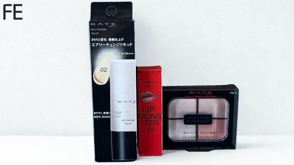 KATEの新作3アイテムをまとめてレビュー!質感・色味・仕上がりを正直レポ【エアリーチェンジリキッド 02・リップモンスター 19・バウンシーチークシャドウ PK-2】