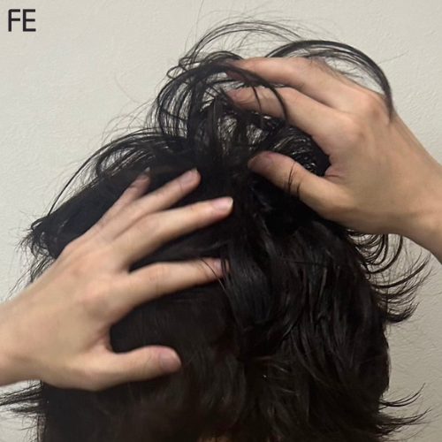 仕上げには、粗めのコームや手ぐしを使って表面を軽くならし、クレイワックスの白浮きを防止します。