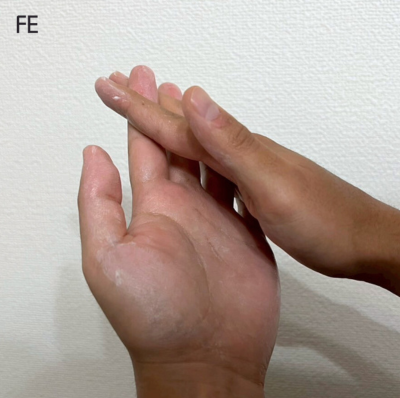 まず、両方の手のひらで最低でも30回以上、しっかりと擦り合わせるように伸ばしてください。
