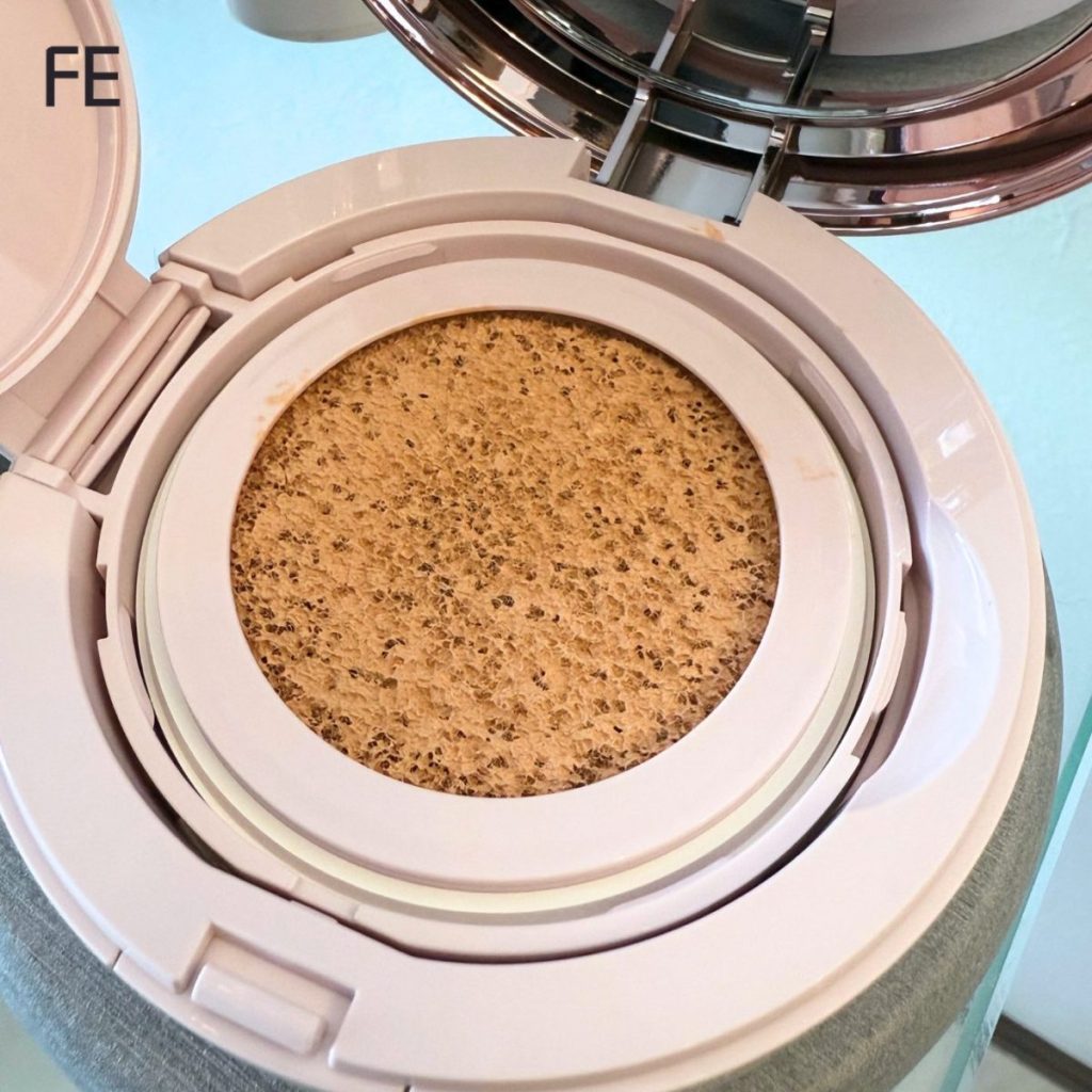 軽くポンポンとしただけで、ムラや厚塗り感がなく仕上がりました。軽い付け心地なのに、毛穴やシミをカバーしてくれる点は、クッションファンデに苦手意識がある方にこそ試していただきたいです。