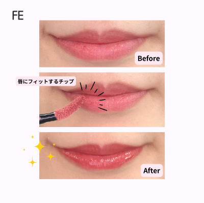 ひと塗りで適度な色づき。下地の唇の色をほんのり透けさせながら、均一で自然なツヤ感を演出。重ね塗りで印象を変えられるため、ナチュラルにも印象的にも仕上げられます。