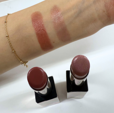 ローズピンクにツヤを感じさせるトーンで、頬の高い位置にのせると内側からにじむような血色感がプラス。 どちらも粉っぽさを感じず、肌にぴたっと密着する軽やかな質感で、重ねても厚みが出にくいのが特徴です。