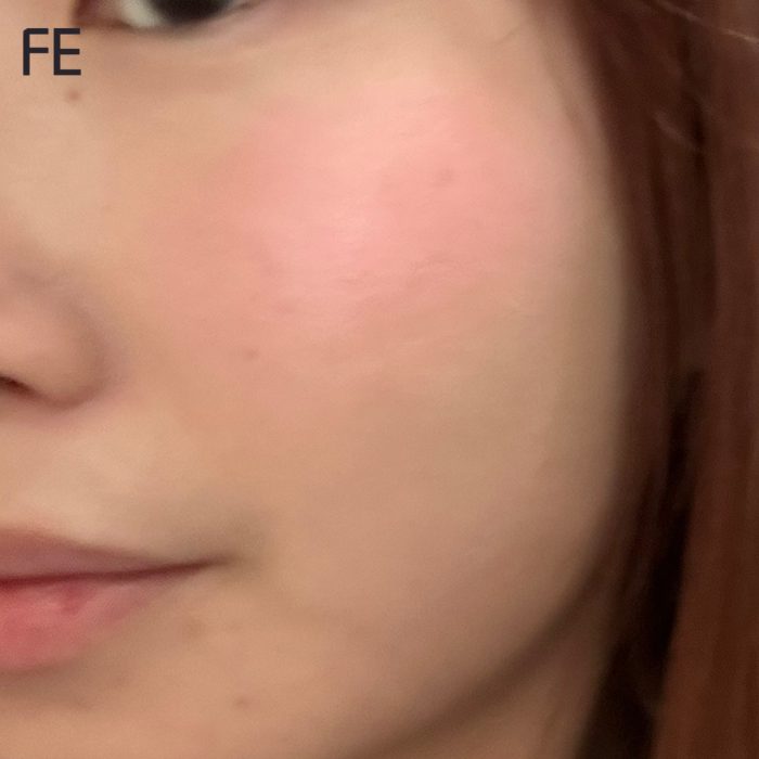 ぽわっと上気したような温かみのあるピンクカラー。塗る量によって印象を調整しやすく、軽くのせるとふんわり、重ねるとしっかり血色感が出ます。