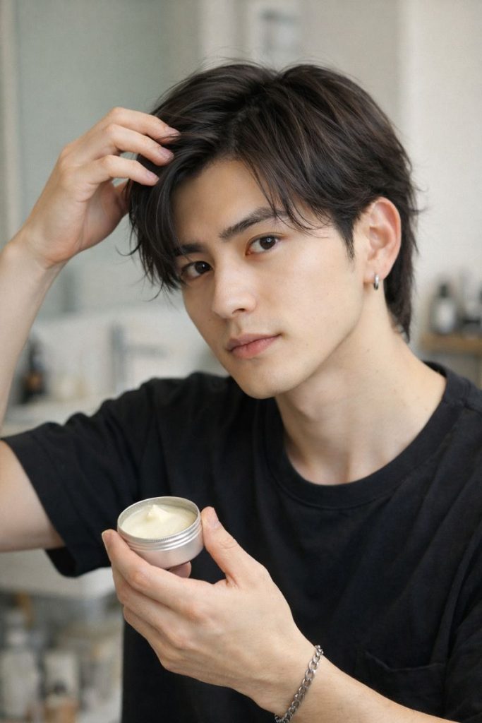 | ミディアムヘア | ツヤ感の出るバーム、またはセット力のあるクリームワックス | 毛先のパサつきを抑え、全体のシルエットを美しく整えます。マッシュスタイルなどでは、バームでナチュラルな束感を、ワックスで毛先の動きを強調できます。 |