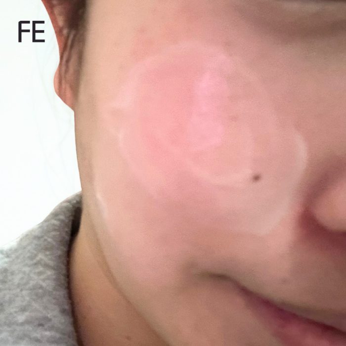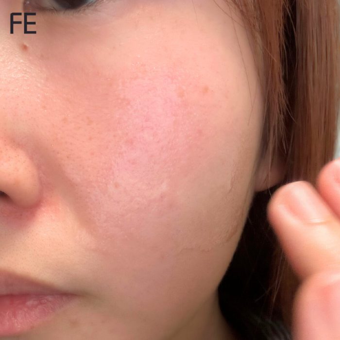 時間をかけて、手のひらで包み込むようになじませていくと、徐々に白浮きが落ち着き、肌がふんわりと柔らかく整うような感触に変化していきました。